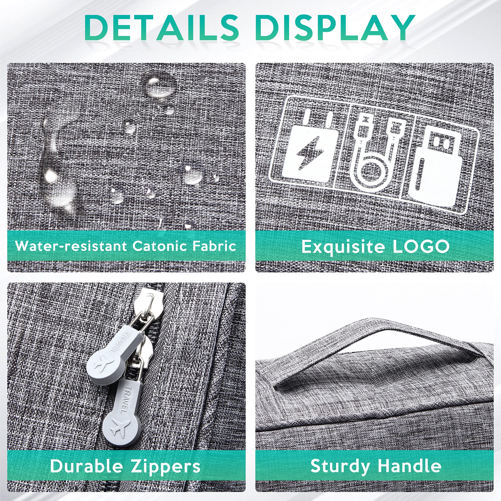 【PREMIUM QUALITY】 - - This travel cable organizer is made of waterproof cation 300D fabric and thick padded inner material. Newly improved double zippers with plane design are more smooth and durable. Superior & neat stitching makes the electronic organizer case exquisite and unique.